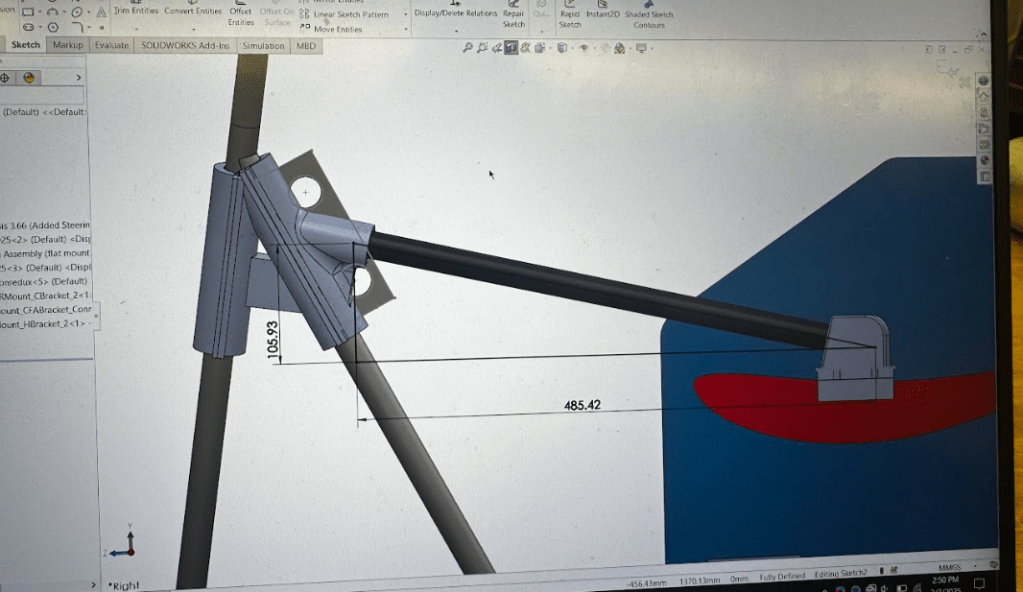 Assigned and assisted two freshmen Mechanical Engineers on the development of their first assembly to be attached to the FSAE car, a system of components that secures the radiator to the chassis. Taught SolidWorks, FEA, CFD, design for manufacturing, and design for assembly principles. Guided subteam members on preparing for formal design reviews and set development deadlines. After completion of this project, members were able to consistently design components in SolidWorks, utilize FEA to validate material choice and component geometry, and understand design for manufacturing principles. Final assembly includes three 3D printed components, two that attach the radiator directly to the chassis, and one that attaches the radiator to a tie rod. Also instructed team members on the cutting and tapping of the tie rod used in the assembly. This design process helped to develop valuable engineering skills for Minutemen Racing team members.
