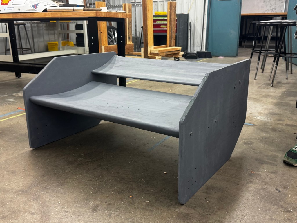 Participated in the manufacturing of a rear wing for an FSAE car, utilizing foam cutting and fiberglass molding. Manufactured a total of two endplates and two different airfoils, each originally cut out of foam and layered with fiberglass, including holes for fasteners and future mounting points. First, each component was cut to size out of foam, using laser-cut templates for each airfoil. Once each foam component was cut to size, fiberglass sheets were cut to size and layered over the foam. After using epoxy to set each fiberglass sheet in place, defects were sanded off, utilizing a fume hood and proper PPE. Finally, the wing was able to be assembled, with fasteners securing to inserts that were set into the foam.